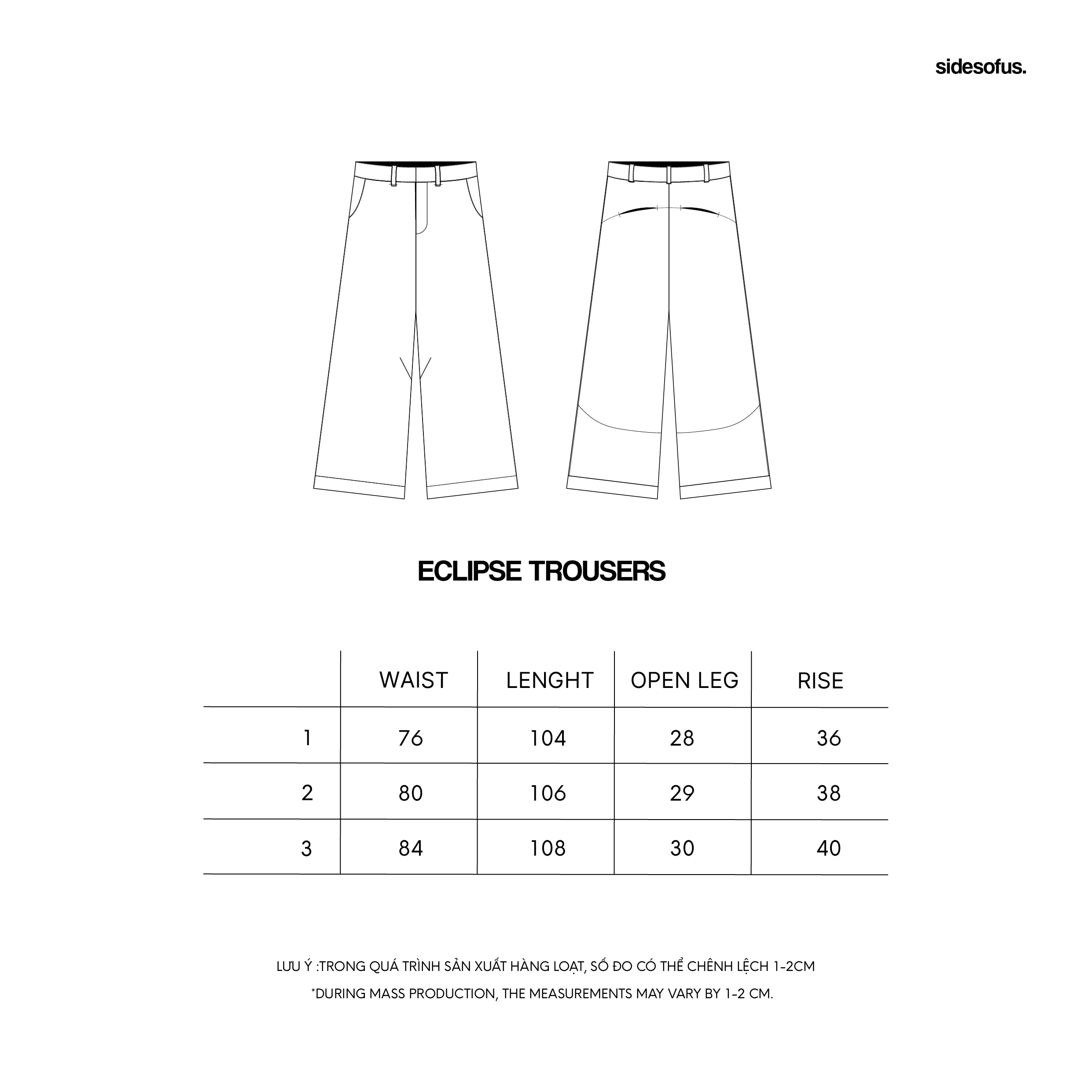 Sizes: 1 – 2 – 3